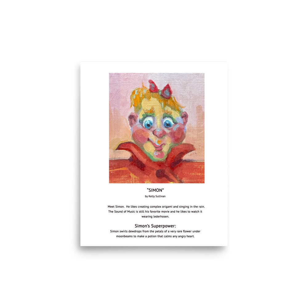 Fanciful characters from the imagination of Kelly Sullivan, each granted personalities and super powers. Find the one that speaks to you. Perfect for any space that needs a little levity, or a reminder to have more fun in life.